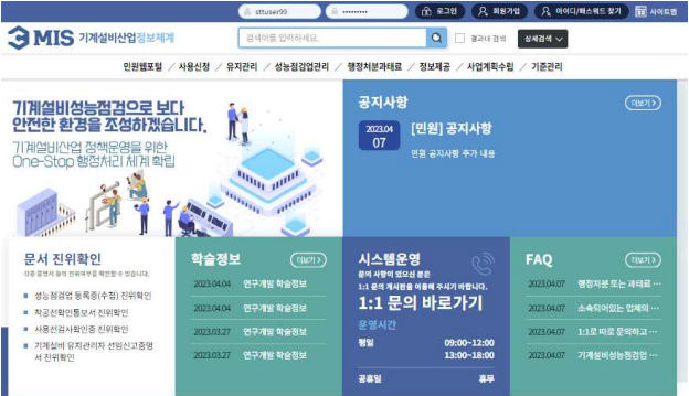 | ▲기계설비산업 정보체계 메인화면 갈무리. 사진=국토부 제공 |