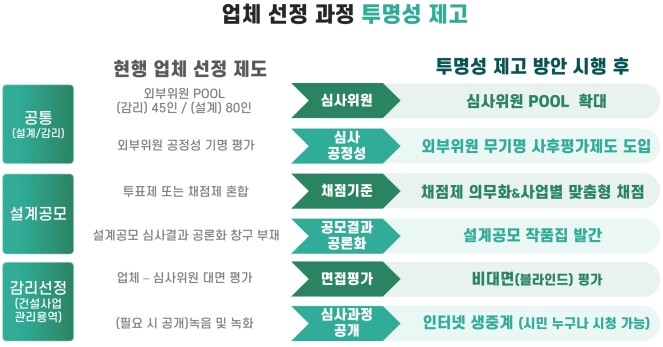 | ▲서울주택도시공사 설계·감리업체 선정 과정 투명성 제고방안. 사진=SH공사 제공 |