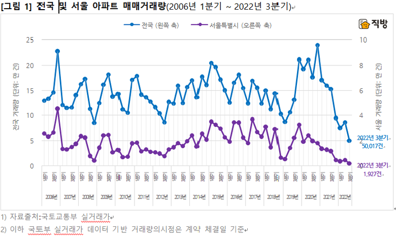 ③데이터 획득 시점 기준 2022년 3분기까지 거래 신고가 완료되었으며,4분기는 거래 및 신고 집계가 진행중이므로 4분기의 분석 결과는 향후 시장 동향에 따라 달라질 수 있음.