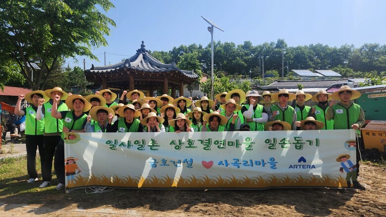 20여년만에 신규 주거 브랜드 아테라(ARTERA)를 선보인 금호건설이 지난 10일 1사(社)1촌(村) 상호결연을 맺은 충북 증평군 증평읍 사곡리마을을 찾아 농촌 일손 돕기 봉사활동 시간을 가졌다.