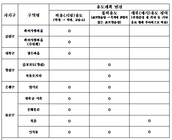 | ▲서울시 용도계획 변경 대상표. 자료=서울시 제공 |