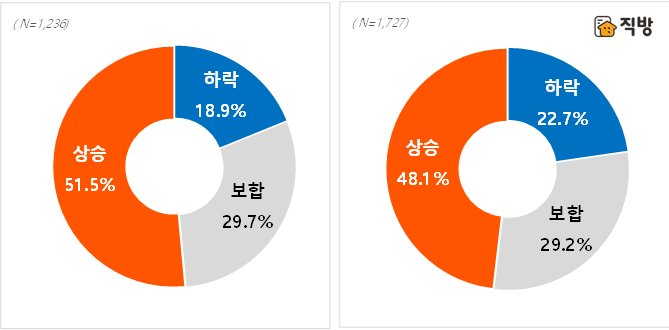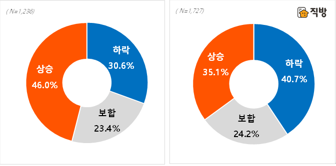 미국의 자이언트스텝 금리 인상, 세계적인 인플레이션 발생 등 부동산 시장을 둘러싼 대외 환경변화에 시장 변동성이 커지는 가운데수요자들의 2022년 하반기 주택시장에 대한 전망을 물었다. 설문조사는 ㈜직방(대표 안성우)의 어플리케이션 이용자를 대상으로 설문조사를 진행하였고, 총 1,727명이 참여했다.관련 설문 결과는 2021년 말에 진행한 2022년 주택가격 전망 결과와 함께 비교, 분석했다.
