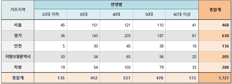 (주의) 본 결과는 직방 어플리케이션 사용자 기준 통계이며 국민 대표성 결과로 보기에는 한계가 있음. 수치 해석에 주의 요.