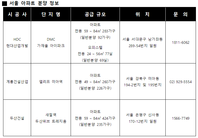 서울서 아파트 분양 잇따라
