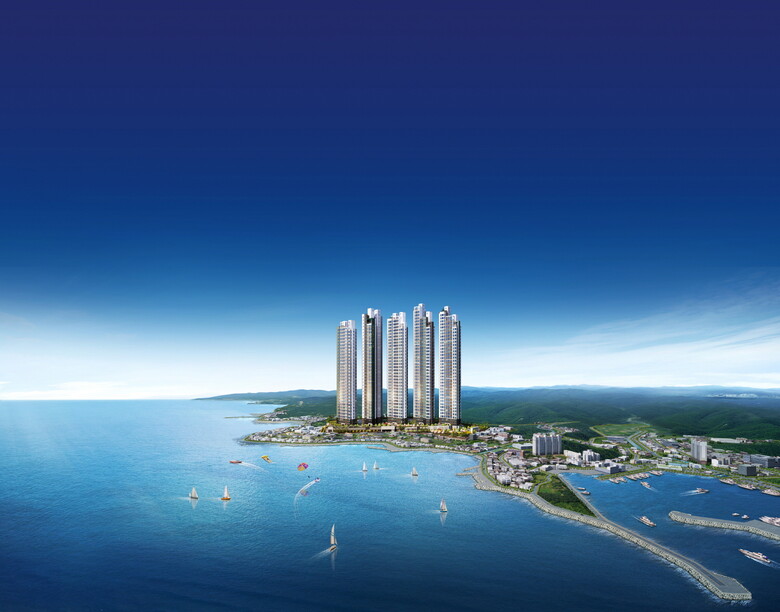 ‘포항 푸르지오 마린시티’는 포항을 대표하는 구룡포 바로 앞에 최고 38층 높이로 설계하고 바다 조망이 가능하도록 단지를 배치함으로써 저층을 포함한 전 가구 파노라마 오션뷰를 확보했다.