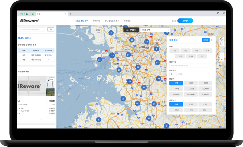 | ▲ 리웨어를 통한 물류센터 검색 서비스<사진제공=(주)리코어> |