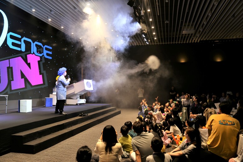 | ▲DL이앤씨가 지난 5일 서울 영등포구 여의도 글래드호텔에서 임직원 가족을 초청해 ‘사이언스 펀(Science Fun)’ 공연을 진행하고 있다.<사진제공=DL이앤씨> |