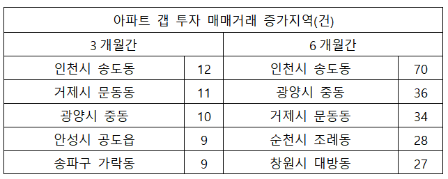 송도동 최근 6개월 간에서도 갭 투자 가장 많아