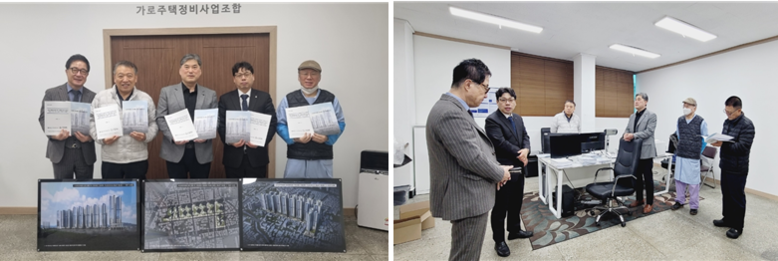 | ▲지난 15일 충청남도 천안시 남동구 영성동 소재 가로주택정비사업조합 사무실에서 관리지역 주민제안서 등을 전달하고 있다. <사진제공=한국부동산원> |