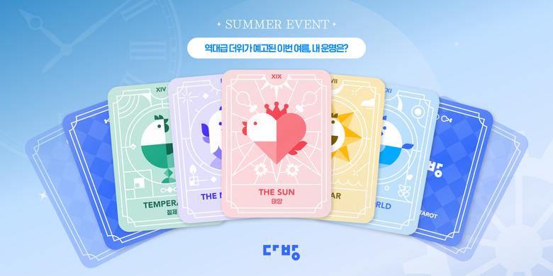 이번 이벤트는 역대급 무더위에 대비하는 나의 운세를 확인할 수 있는 타로카드 형식으로, 초복을 앞두고 색다른 재미를 선사하기 위해 준비했다.