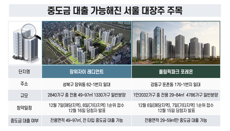 업계 관계자는 “강북과 강남을 대표할 ‘장위자이 레디언트’와 ‘올림픽파크 포레온’은 당첨자 발표일이 달라 중복청약이 가능해 더욱 많은 청약자가 몰릴 것으로 보인다”며, “단 올림픽파크 포레온은 전용 84㎡ 기준 중도금 대출이 불가하고, 장위자이 레디언트는 전 타입 대출이 가능한 만큼 자금 여력에 따라 선호도가 갈릴 것으로 보인다”고 말했다.