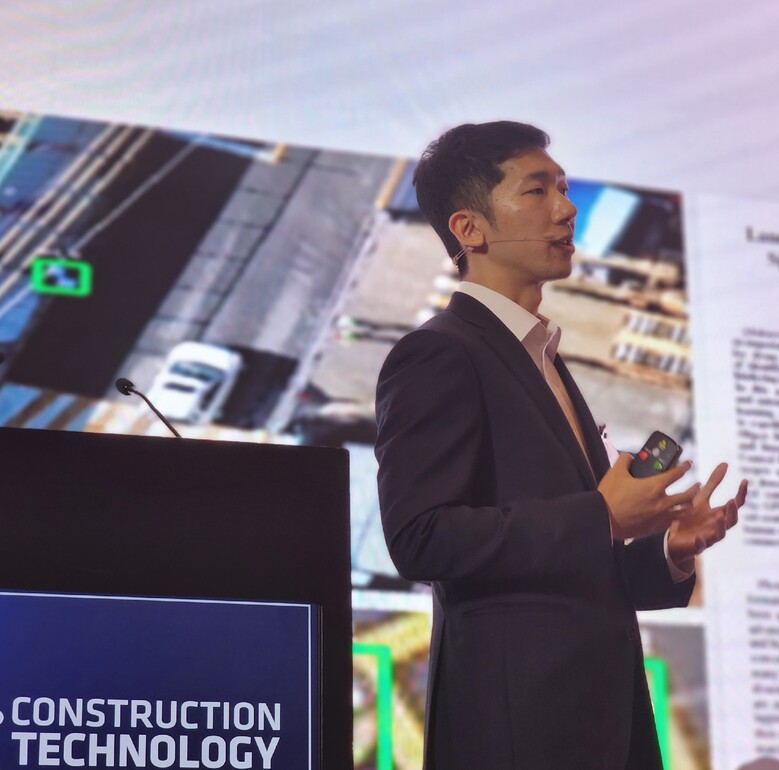 | ▲중동 최대의 건설 기술 컨퍼런스에서 연사로 발표하고 있는 엔젤스윙 박원녕 대표 <사진제공=엔젤스윙> |