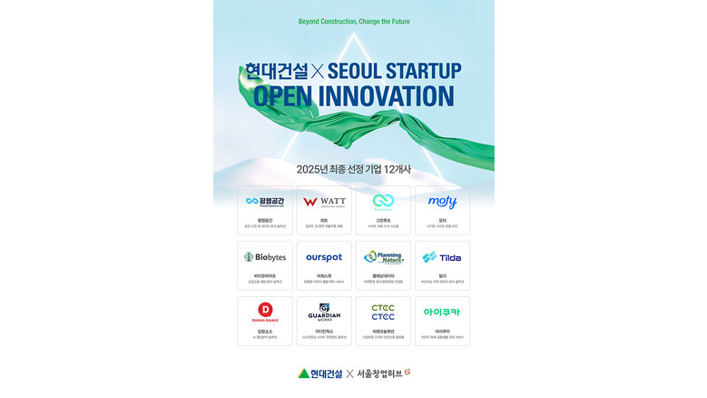 [한국건설경제뉴스=이병훈 기자] 현대건설은 지난 4일, ‘2025 현대건설 x Seoul Startup Open Innovation’ 공모전을 통해 혁신 기술을 보유한 12개 스타트업을 최종 선정했다고 10일 밝혔다.