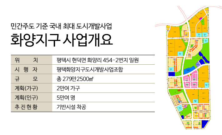 경기도 평택시 현덕면 화양리 일원에 도시개발사업으로 진행되는 화양지구는 여의도 크기와 맞먹는 규모를 자랑한다. 총 279만2500㎡ 부지에 계획된 상주 가구 수만 2만여 가구가 넘고, 총 5만여 명이 거주하게 될 예정이다.