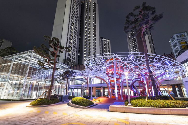 | ▲대치 '푸르지오 써밋'에 설치된 아티스틱 플레이그라운드 전경<사진제공=대우건설> |