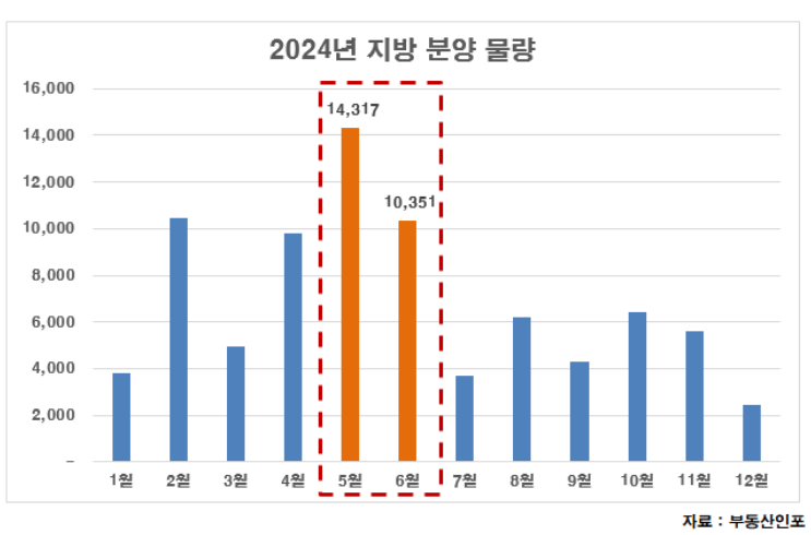 부동산시장 분석업체 부동산인포 자료에 따르면, 5~6월 지방 분양시장에는 총 34개 단지 2만4668가구(기 분양 포함)가 일반분양한다. 이미 5월에 분양한 곳을 제외하더라도 23곳 1만7,022가구나 된다.