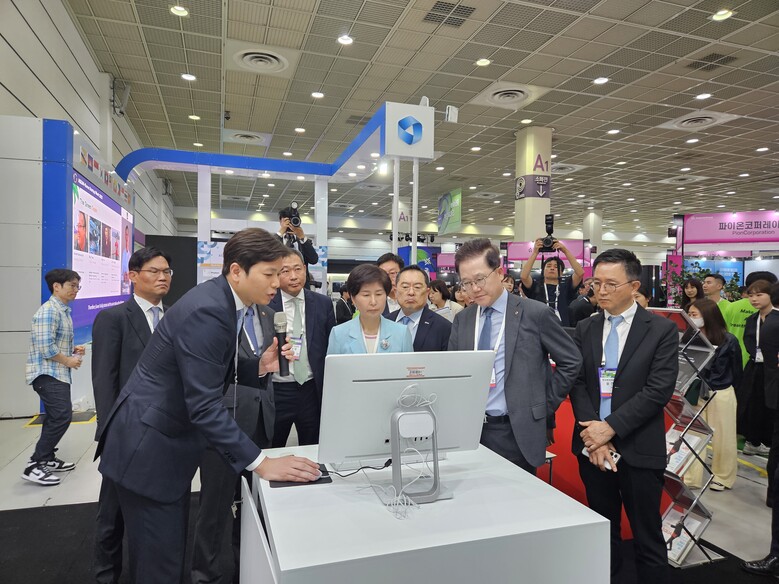 이날 알스퀘어 부스에는 백혜련 국회 정무위원회 위원장과 김주현 금융위원회 위원장, 강석훈 산업은행 회장, 구자열 무역협회 회장, 성상엽 벤처기업협회장 등이 방문해 이용균 알스퀘어 대표로부터 사업 현황과 서비스를 소개받았다.