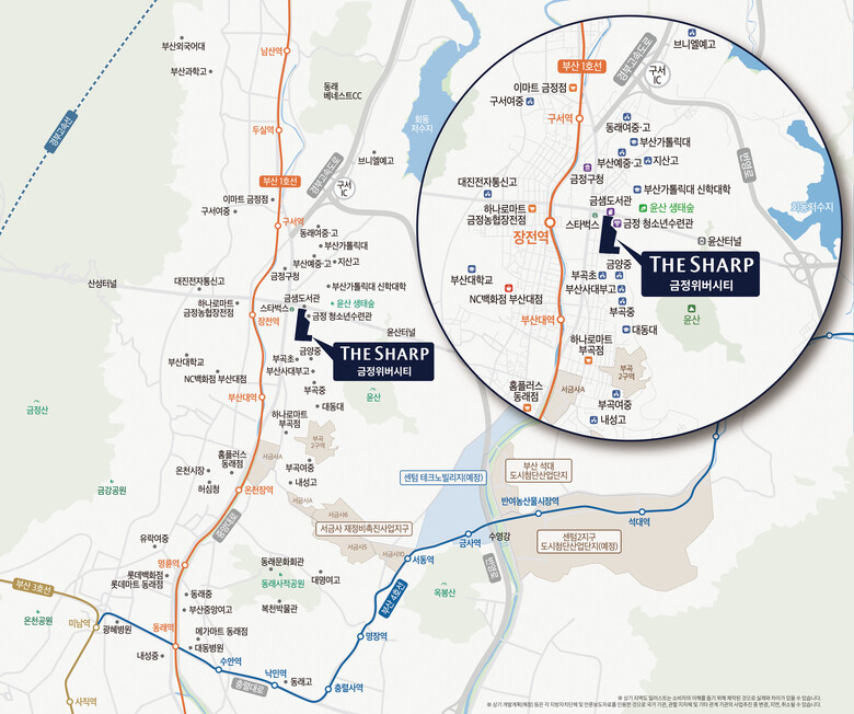 단지가 들어서는 금정구는 최근 대규모 주거정비사업이 속도를 내 신흥 주거타운으로 재탄생할 전망이다. 시공사 선정을 마친 서금사 재개발 A·5·6구역(9,791가구, 예정)을 필두로 부곡2재개발, 구서·남산·청룡 재건축, 가로주택정비사업 등이 진행 중이다. 완료 시에는 약 1만 9,000가구의 대규모 주거타운이 조성돼 주거 인프라가 한층 개선될 것으로 보인다.