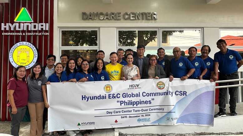 현대건설은 지난 18일(현지시간) 필리핀 남부철도 4·5·6 공구가 위치한 라구나 주(州) 산타로사 시(市) 보육원 건물을 완공했다. 이날 완공식에는 정형태 필리핀 남부철도 4·5·6 공구 통합 현장소장과 아를렌 B. 아르실라스(Arlene B. Arcillas) 시장, 국제개발협력NGO 월드투게더, 현지 주민, 관계자 등 약 100명이 참석해 지역사회 협력의 의미를 더했다.