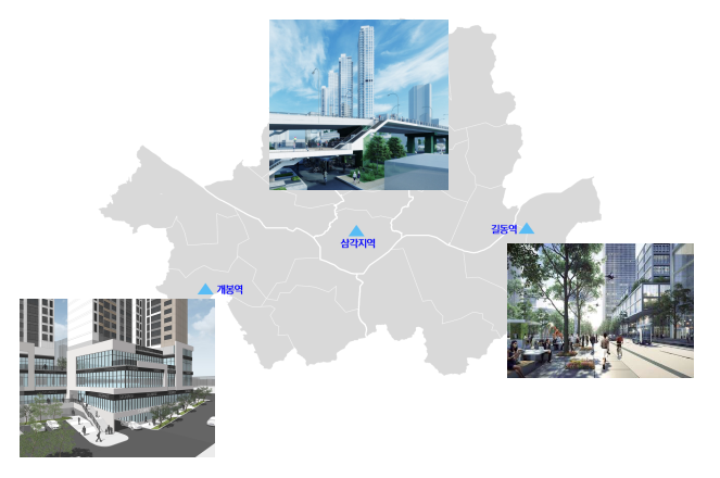 서울 용산구 삼각지역과 구로구 개봉역, 강동구 길동역 역세권에 고밀 복합개발이 추진된다.
