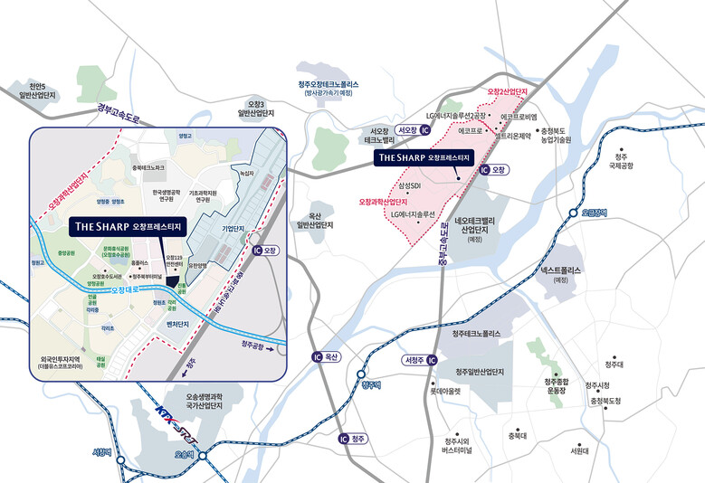 또한 주변에는 방사광가속기 개발이 2027년 완공을 목표로 진행되고 있어 이에 따른 수혜도 상당할 것으로 예상되며 이밖에도 단지 주변에는 오창제2일반산업단지, 청주오창테크노폴리스 등 출퇴근이 용이한 산업단지도 다수 자리하고 있어 산업단지 종사자 수요도 예측된다.