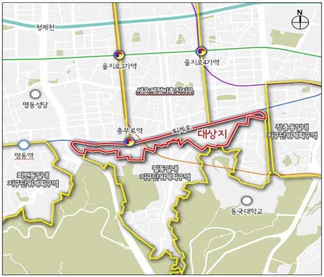 | ▲퇴계로변 지구단위계획구역 위치도. 사진=서울시 제공 |