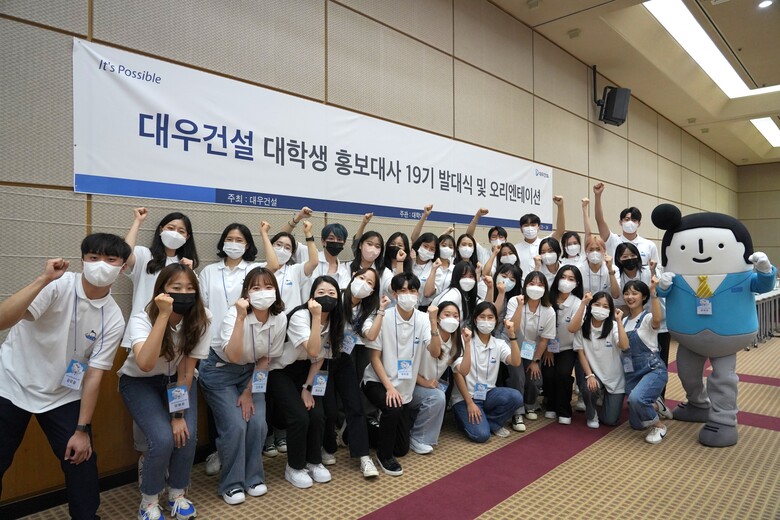 대우건설(대표이사 백정완)은 ‘대우건설 대학생 홍보대사(이하 대대홍)’ 19기 발대식을 지난 23일에 대우건설 본사 3층에 위치한 푸르지오 아트홀에서 진행했다고 밝혔다.