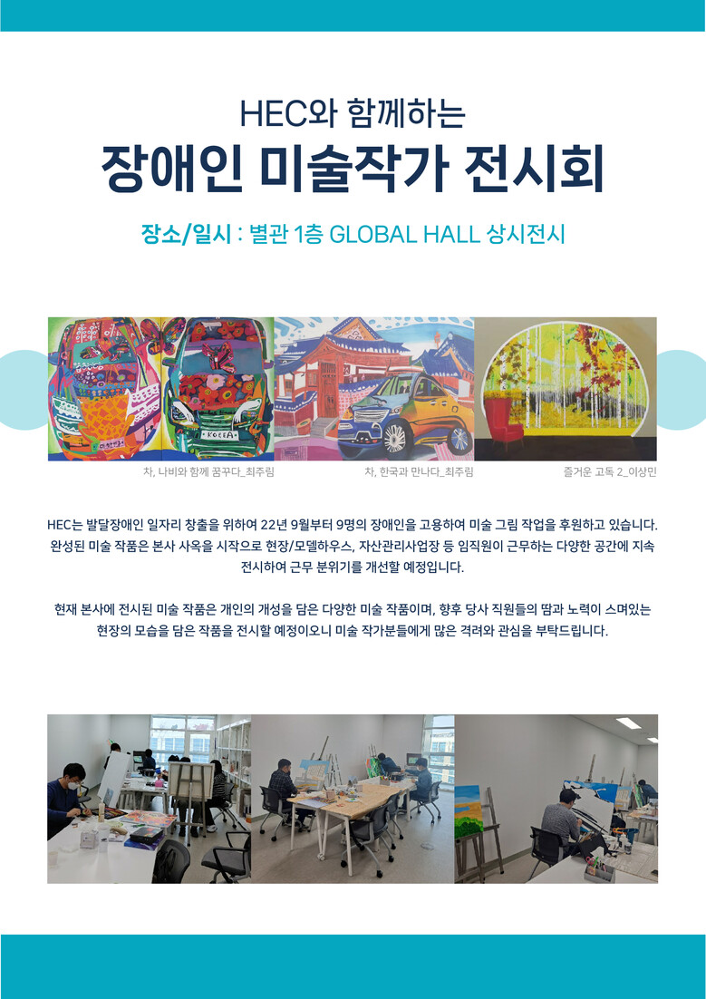 | ▲현대엔지니어링 사내 장애인 미술 작가의 작품 전시 안내문<자료제공=현대엔지니어링> |