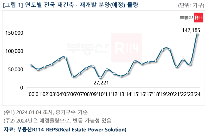 2024년 재건축 · 재개발 계획물량 14.7만 가구, R114 조사 이래 가장 많아