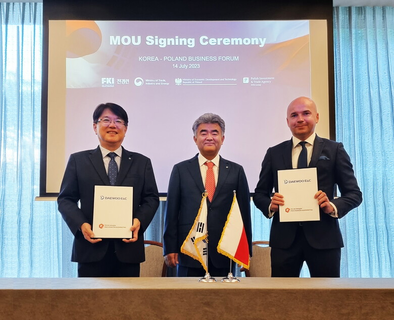 이 날 MOU 체결식에는 대우건설 해외사업단장 한승 상무가 서명했으며, 폴란드건설협회는 프제미즈와 야니제브스키(Przemyslaw Janiszewski) 감독위원회 위원, ERBUD 에서는 아그니에슈카 글로바츠카(Agnieszka Głowacka), 야첵 레츠코브스키(Jacek Leczkowski) Management Board 임원이 서명했다. 서명식에는 대우건설 정원주 회장, 이창양 산업통산자원부 장관, 폴란드 발데마르 부다(Waldemar Buda) 경제개발기술부 장관이 함께 자리를 빛냈다.