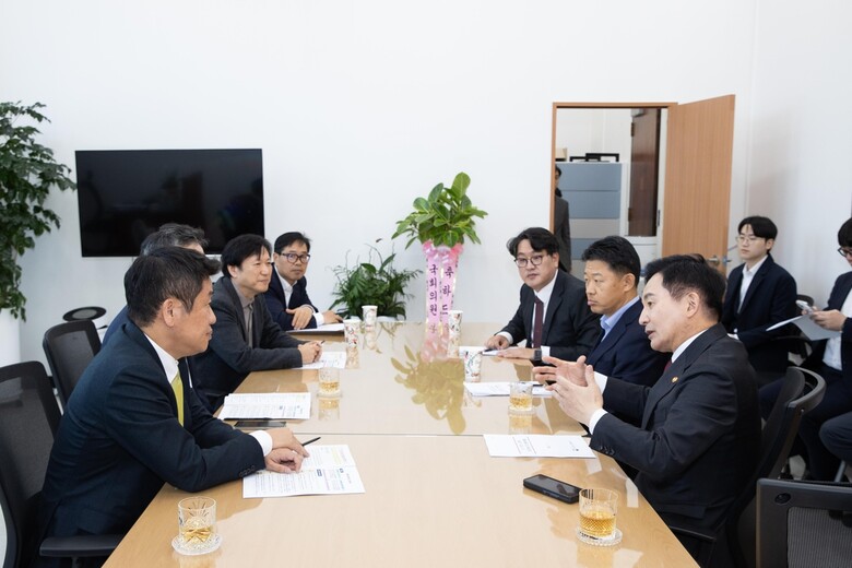 | ▲원희룡 국토교통부 장관이 7일 국회에서 국민의힘 유의동 정책위의장, 박정하 수석대변인을 만나 노후계획도시 특별법의 연내 국회 통과를 요청하고 있다. 사진=국토부 제공 |