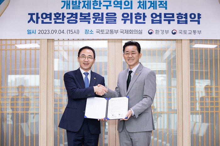국토교통부는 환경부와 4일 개발제한구역의 체계적 자연환경복원을 위해 업무협약을 체결했다고 5일 밝혔다.
