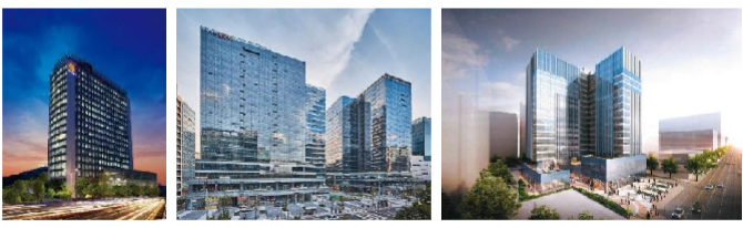 | ▲(좌측부터) 코오롱LSI 외관, 가산 SKV1센터, 가양 스카이밸리5차 지식산업센터<자료제공=코오롱LSI> |