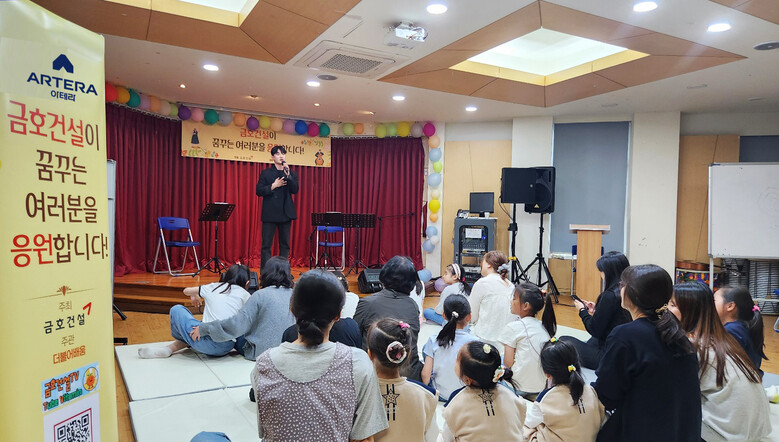금호건설 관계자는 “음악을 통해 즐거움을 함께 나누고 아이들에게 꿈과 희망을 전할 수 있어 감동과 보람을 느낀다” 라며 “앞으로도 다양한 방식으로 나눔의 가치를 실현할 수 있도록 사회적 기업으로서 책임을 다하겠다”고 말했다.