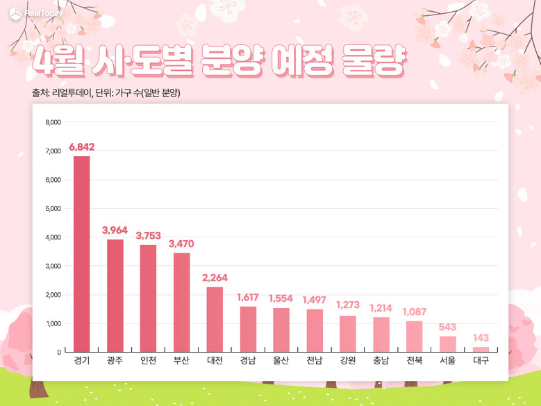 경기(6,842가구), 광주(3,946가구), 인천(3,753가구) 순