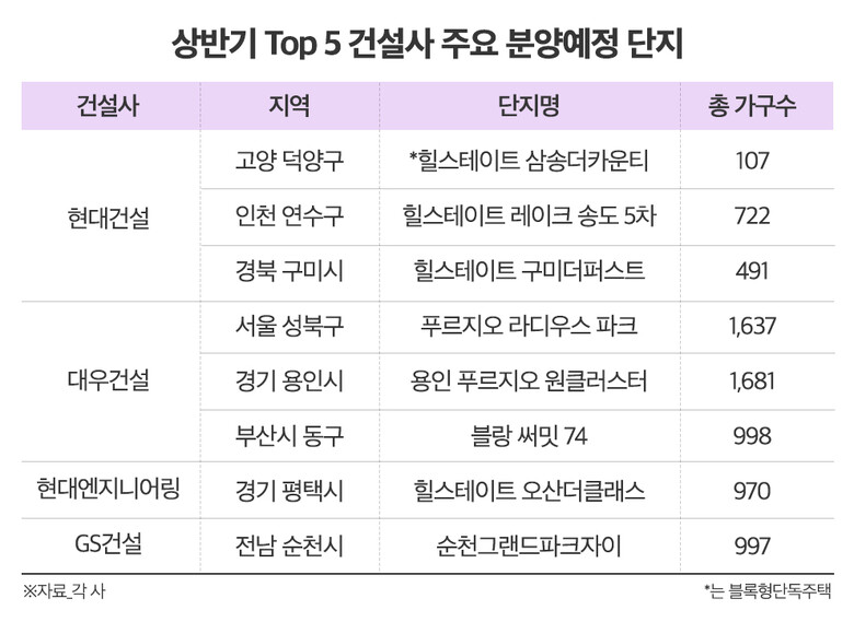 한 업계 관계자는 "시평 5위 내 건설사는 브랜드파워와 상품차별성을 바탕으로 품질이 우위에 있다는 인식이 크고, 입지 선정도 남달라 다소 침체된 분양시장에서도 우수한 성적을 거두고 있는 상황"이라며 "지속적인 특화 상품 개발과 그동안 쌓아 올린 신뢰를 바탕으로 올해 남은 상반기 분양시장에도 소비자들의 꾸준한 관심이 이어질 것으로 예상된다"고 전했다.