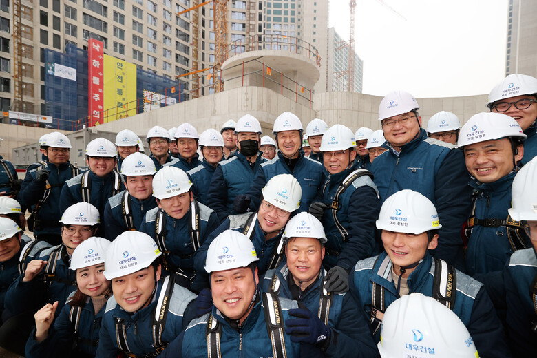 | ▲올해 첫 안전점검에 참여한 대우건설 백정완 사장과 현장 임직원들<사진제공=대우건설> |