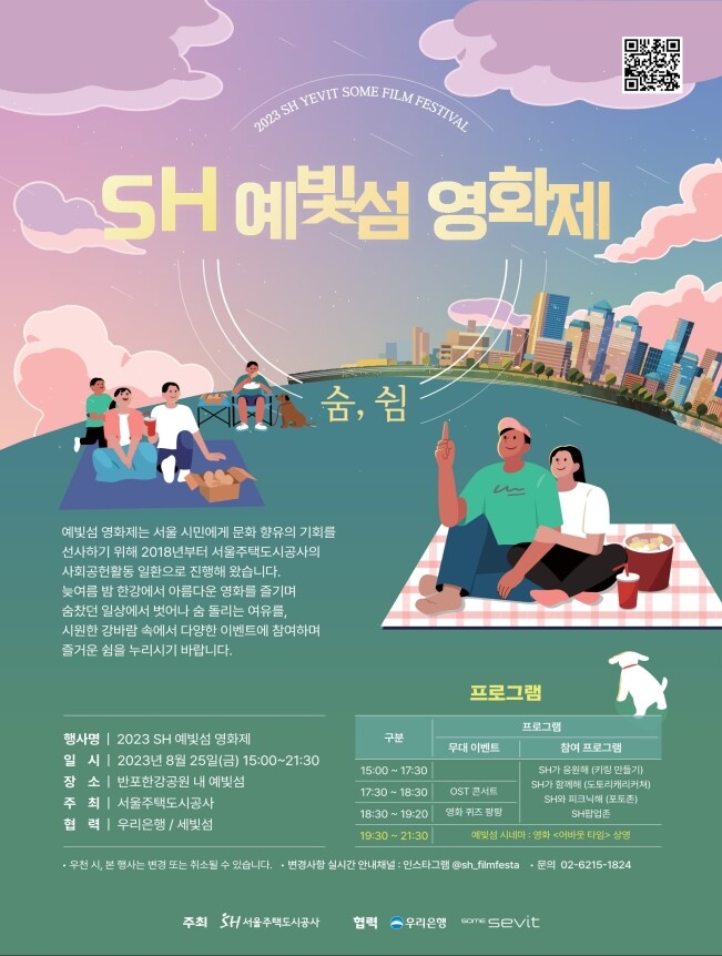 SH 예빛섬 영화제는 누구나 참여할 수 있는 무료 행사로, SH공사가 2018년부터 운영하고 있는 사회공헌 활동이다. 영화 상영뿐 아니라 다양한 부대 행사가 마련된다.