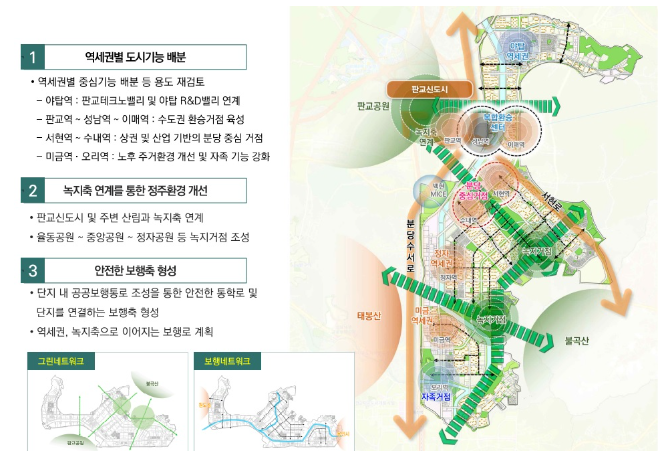 성남 분당은 '다시 도약하는 분당신도시'를 비전으로 첨단과 혁신의 도시와 역세권 등 특화 도시, 세대 공존을 위한 도시 조성이라는 3가지 목표에 따라 정비될 예정이다.