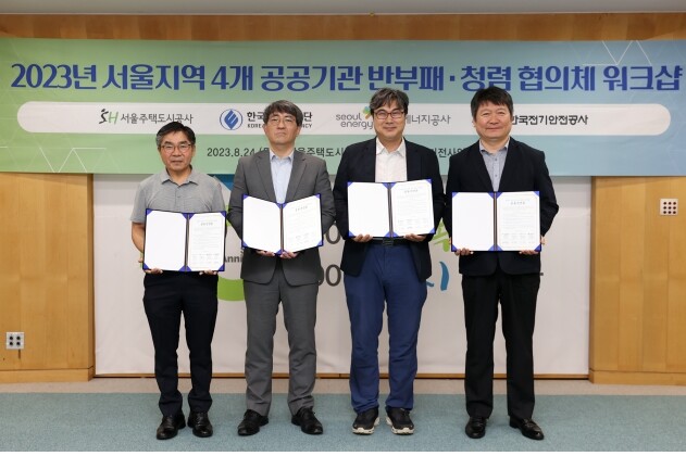 서울주택도시공사(SH공사)는 서울에너지공사, 한국에너지공단 서울지역본부, 한국전기안전공사 서울지역본부와 지난 24일 '반부패·청렴 협의체 연수회'을 열고 공동 실천을 노력할 것을 다짐했다고 30일 밝혔다.