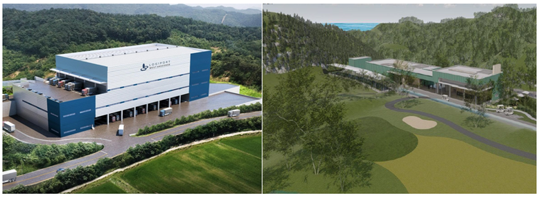 | ▲로지포트 서안성 물류센터 조감도(좌)ㆍ울산 블루웨일CC 조감도(우) |