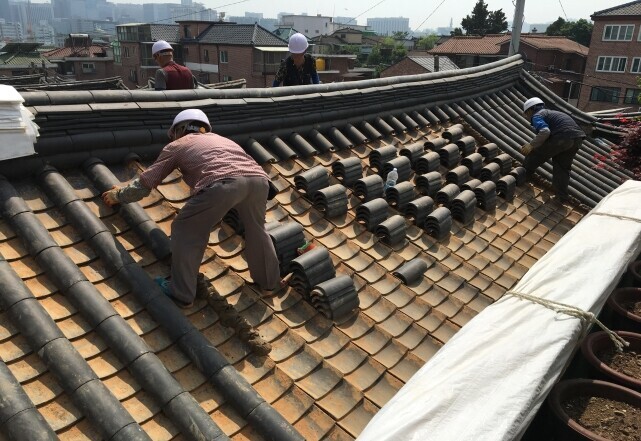 | ▲한옥 지붕 수선을 지원하는 모습. 사진=서울시 제공 |