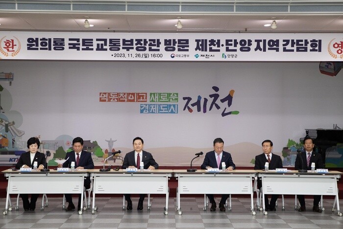 국토교통부는 원희룡 장관이 26일 오후 충북 제천시청에서 열린 관계기관 간담회에 참석하고, 제천시장과 단양군수 등 지역 건의사항을 청취했다고 27일 밝혔다.