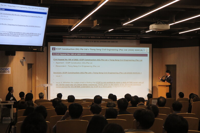 이번 세미나는 국제 엔지니어링 계약의 쟁점을 다뤘다. 세미나 1부는 최근 국제 건설 및 엔지니어링 관련 주요 판례를 소개하는 전문가 발표로 진행되었다. SCL KOREA의 학술위원장을 맡고 있는 윤덕근 변호사의 발제를 시작으로 ㈜원준의 김경호 변호사가 “설계사의 책임 범위 관련 최신 국제 판례”를, 드라이버 트렛의 이정국 지사장이 “간접비 클레임 최신 국제 판례”를, 김앤장 법률사무소의 박다미 변호사가 “Bond Call 관련 최신 국제 판례”를 각각 이어서 발표하였다.