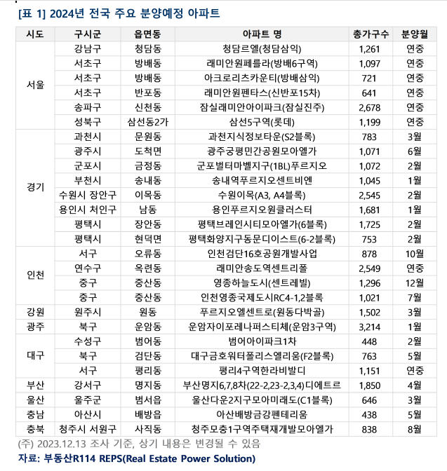 분양가 인상 기조가 이어지고, 금융비용 부담이 가중될 수록 청약 수요층의 가격 민감도가 커지고 있다. 이에 따라 2024년 분양시장은 서울 등 일부 선호지역 내에서도 입지와 단지별 분양가 수준에 따라 청약 온도차가 심화되는 한 해가 될 전망이다.
