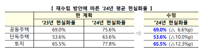 | ▲2024년 부동산 공시가격 현실화율 계획. 표=국토부 제공 |