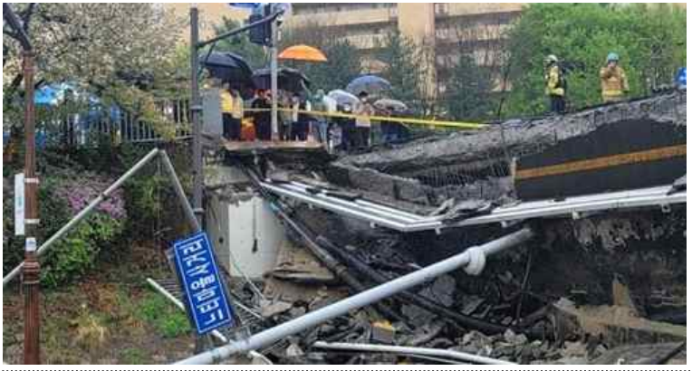 현장조사 결과를 반영한 구조해석 결과 도로부 슬래브는 안전율(1.0)을 확보하고 있으나, 캔틸레버부(보도부)는 콘크리트 상면에서 아래쪽으로약 13cm까지 열화(층분리・염해 등)돼 캔틸레버 부분의 처지려는힘을 이기지 못하고 파괴된 것으로 분석됐다.