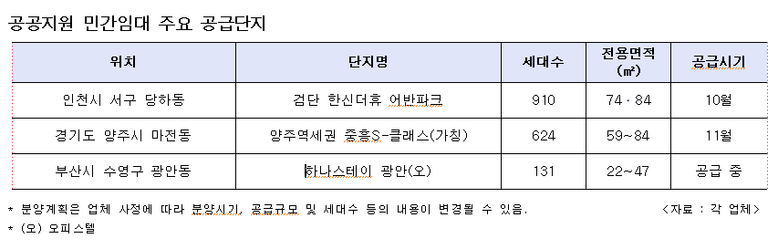 경기 양주시에서는 중흥토건이 11월 ‘양주역세권 중흥S-클래스(가칭)’를 공급할 계획이다. 전용 59~84㎡, 총 624세대의 공공지원 민간임대주택으로 최대 10년 거주 가능하다. 수도권 지하철 1호선 양주역을 이용하기 편리하고, 편의, 교육, 공원 등 다양한 생활 인프라를 갖췄다.