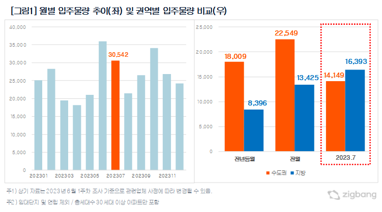 입주물량 전월 대비 15% 감소, 전년동기 대비 16% 증가