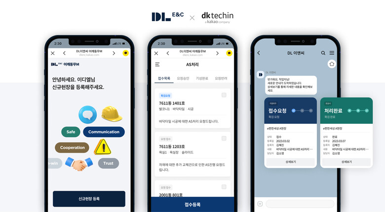 DL이앤씨는 기존 AS 관리 시스템을 모바일화해 어깨동무M에 탑재했다. 이를 통해 공동주택과 오피스 빌딩 등 다양한 고객 입주 현장에서 AS 처리 전 과정을 원스톱(One-Stop)으로 관리하도록 했다.
